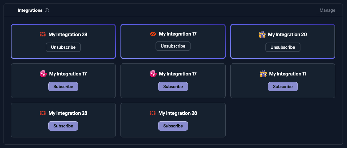 To subscribe to an integration to the current blocklist, click on the Subscribe button from the desired integration. You will now see a different border around the subscribed Integrations.