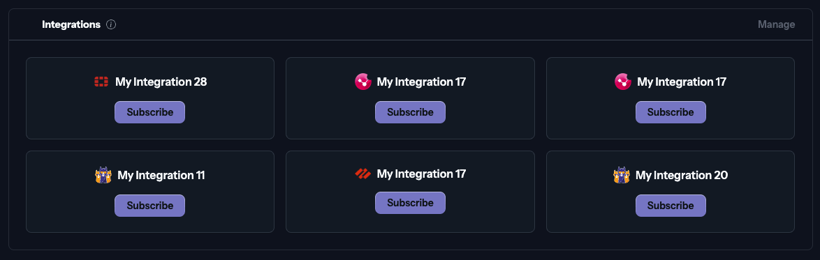 If your organization already has Integrations, a section at the bottom can also be used to start the subscription process.
